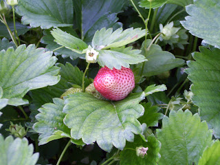 to throw snowballs at me to see the strawberries that are ripening.